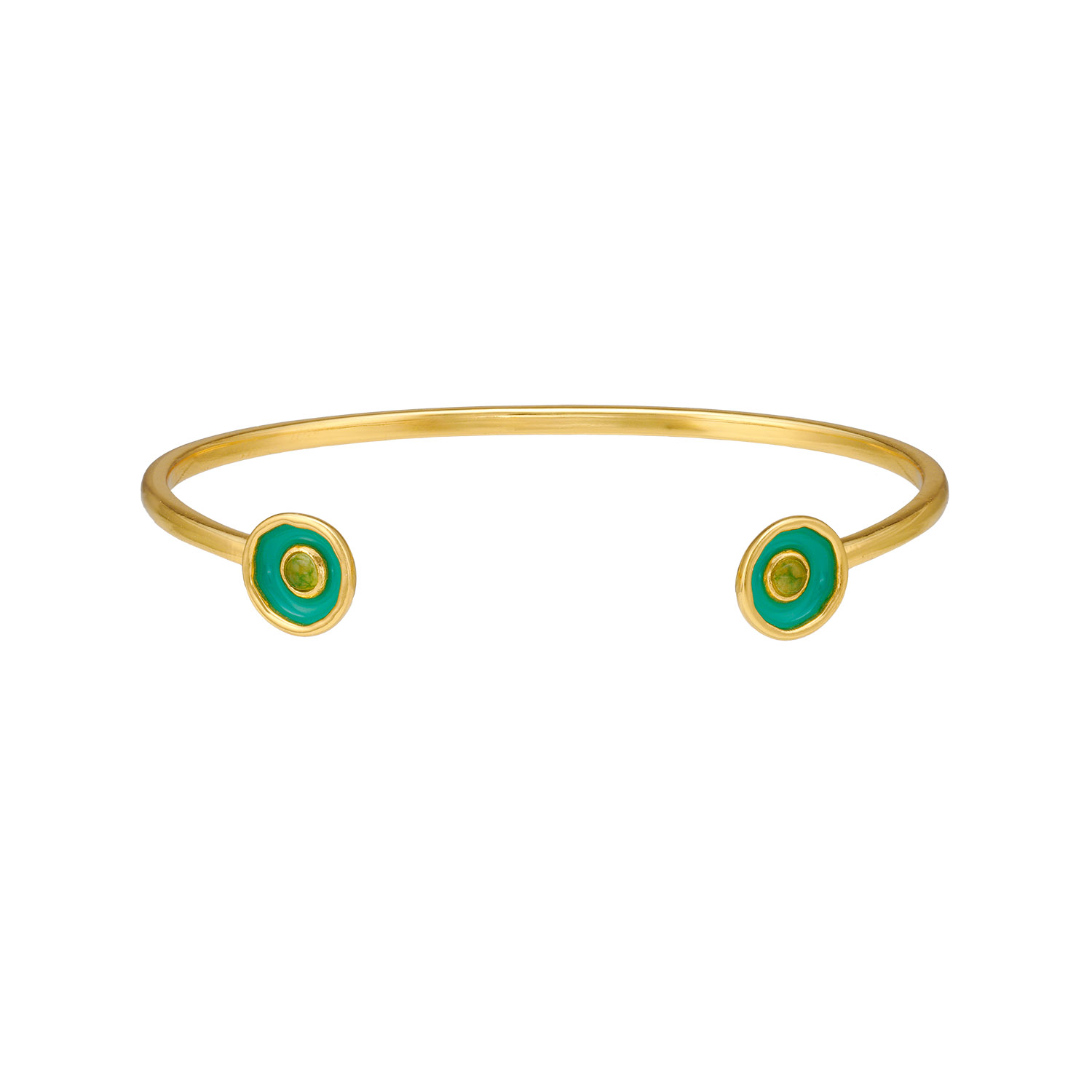 Armreif aus Messing, vergoldet, Emaille, grüner Quartz