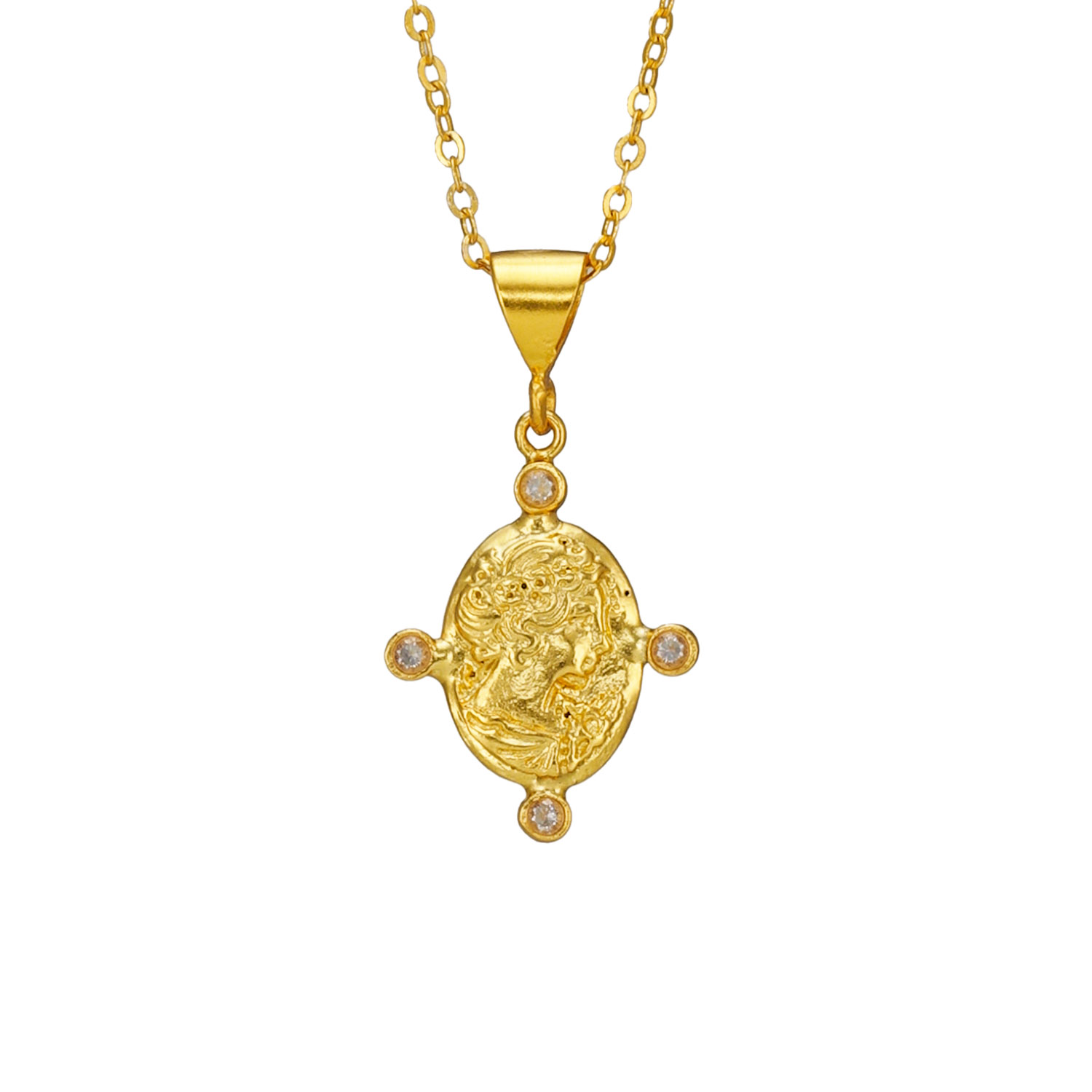 Kette aus Messing, vergoldet, weiße Kristalle