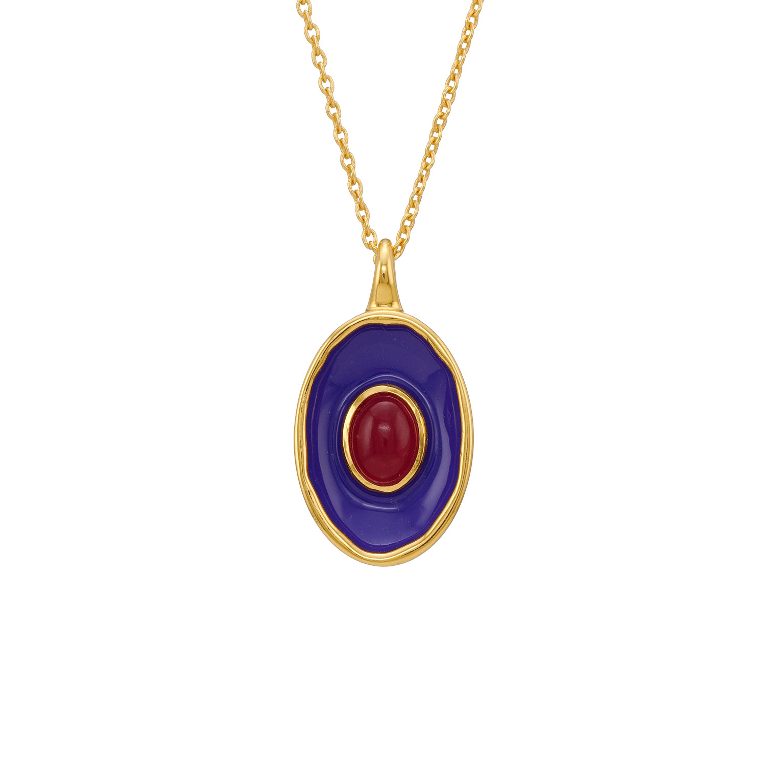 Kette aus Messing, vergoldet, Emaille, roter Quartz
