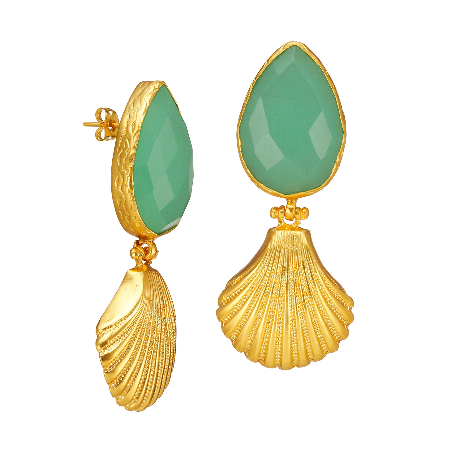 Ohrring aus Messing, vergoldet, Aquachalcedon