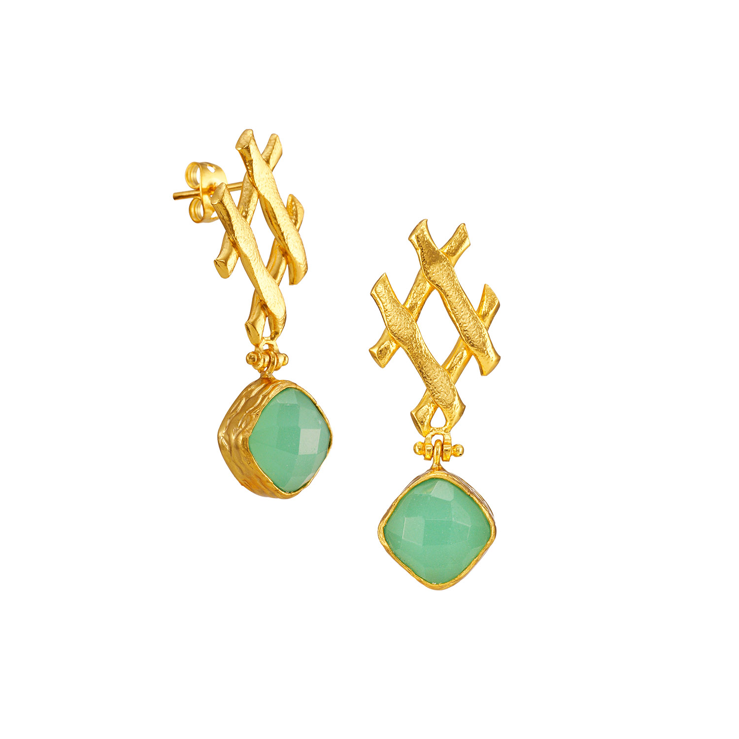 Ohrring aus Messing, vergoldet, Aquachalcedon