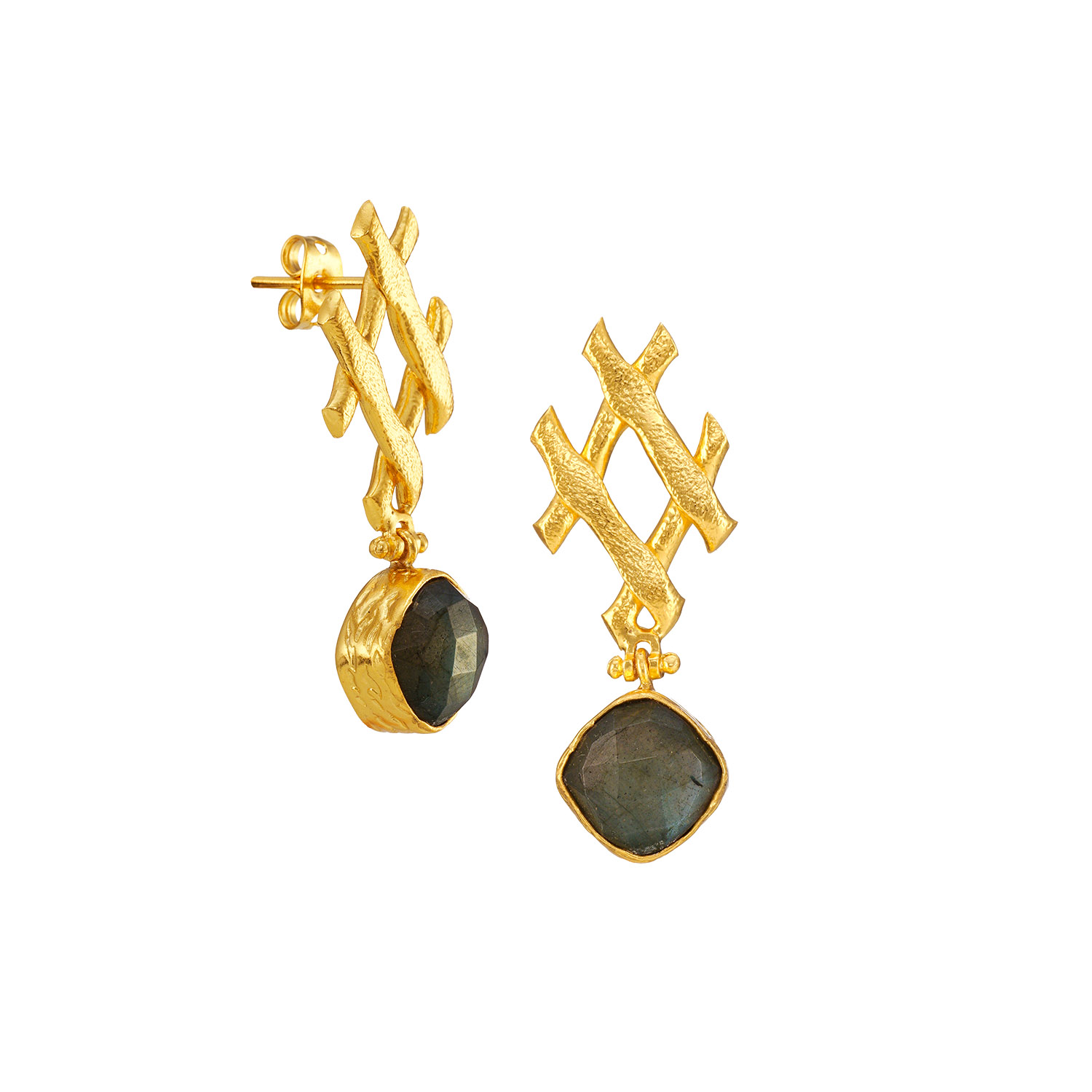 Ohrring aus Messing, vergoldet, Labradorit