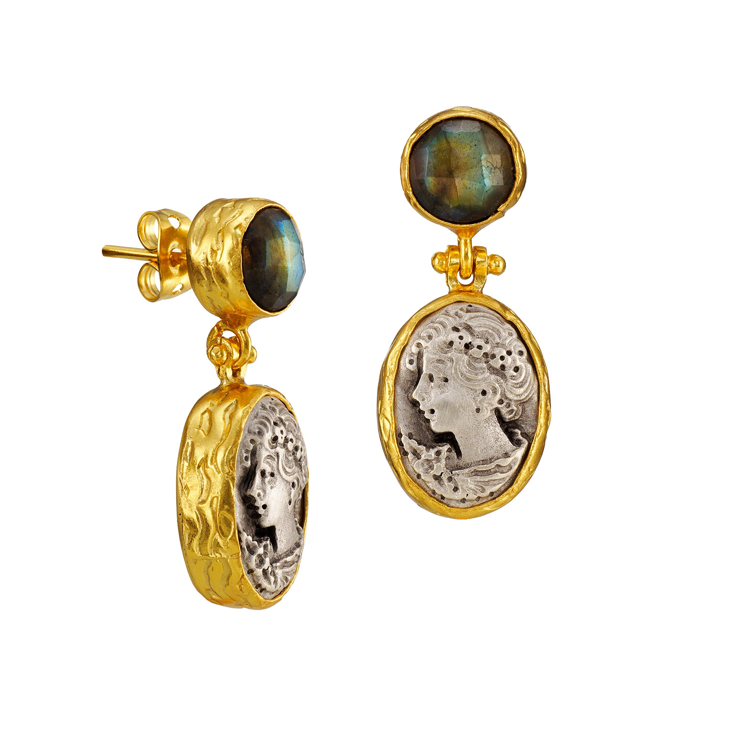Ohrring aus Messing, vergoldet/versilbert, Labradorit