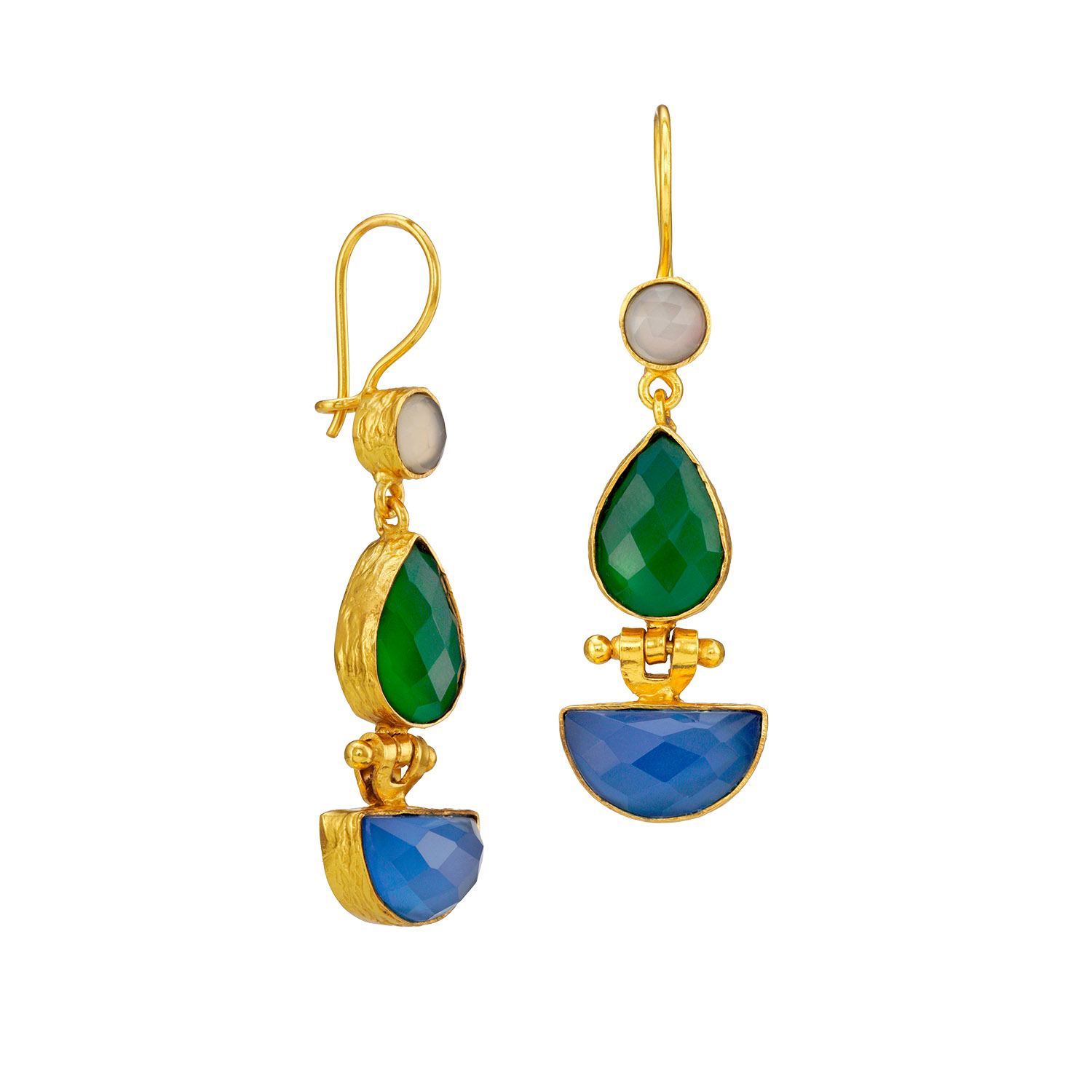 Ohrring aus Messing, vergoldet, blue/green Onyx, Labradorit
