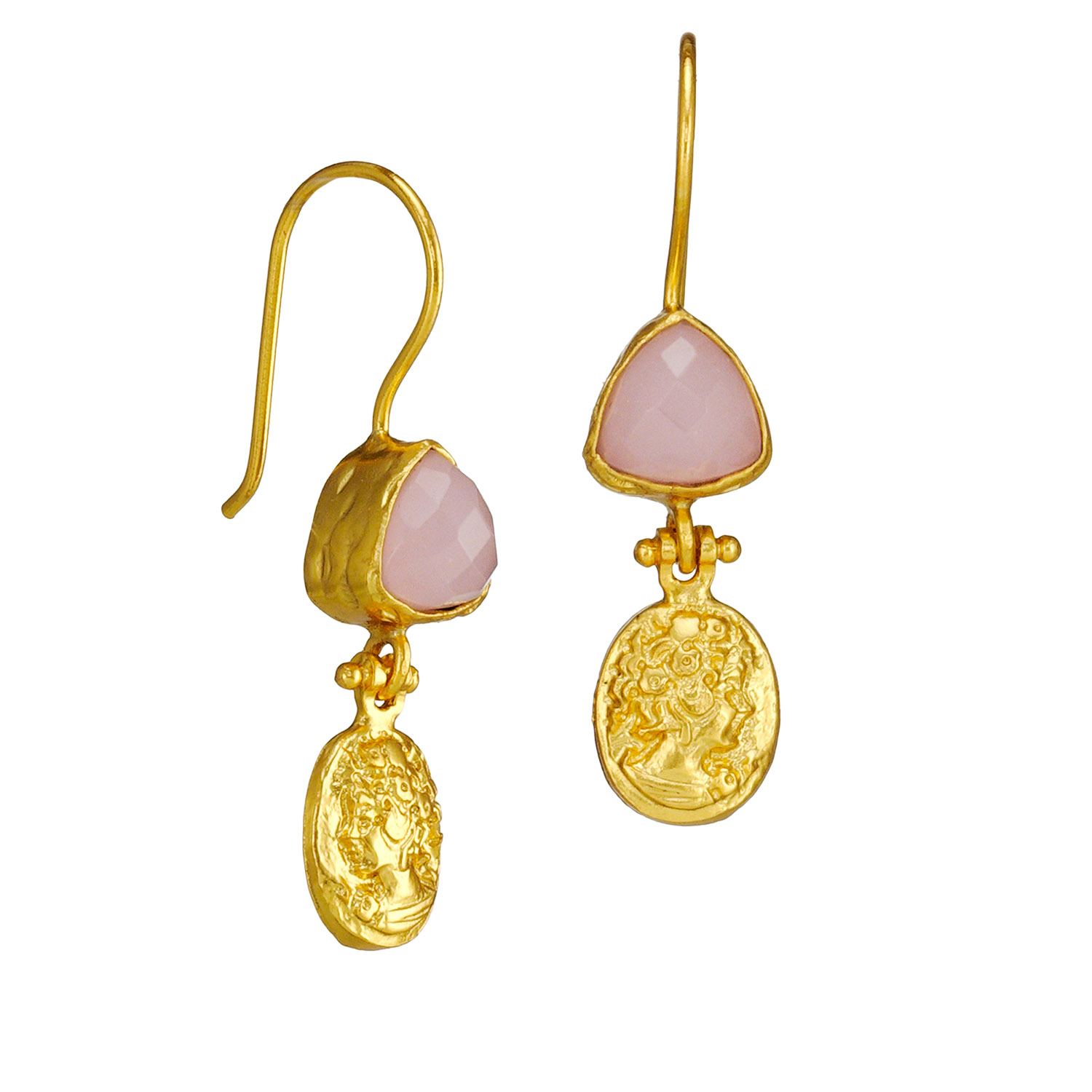 Ohrring aus Messing, vergoldet, Rosenquartz