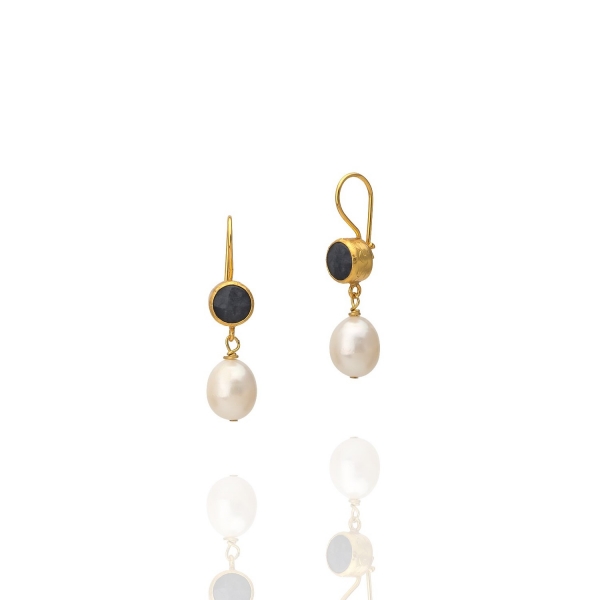 Dieser entzückende, feminine Ohrhänger besticht durch die Konbination von Farbsteinen mit der kleinen Barockperle.
