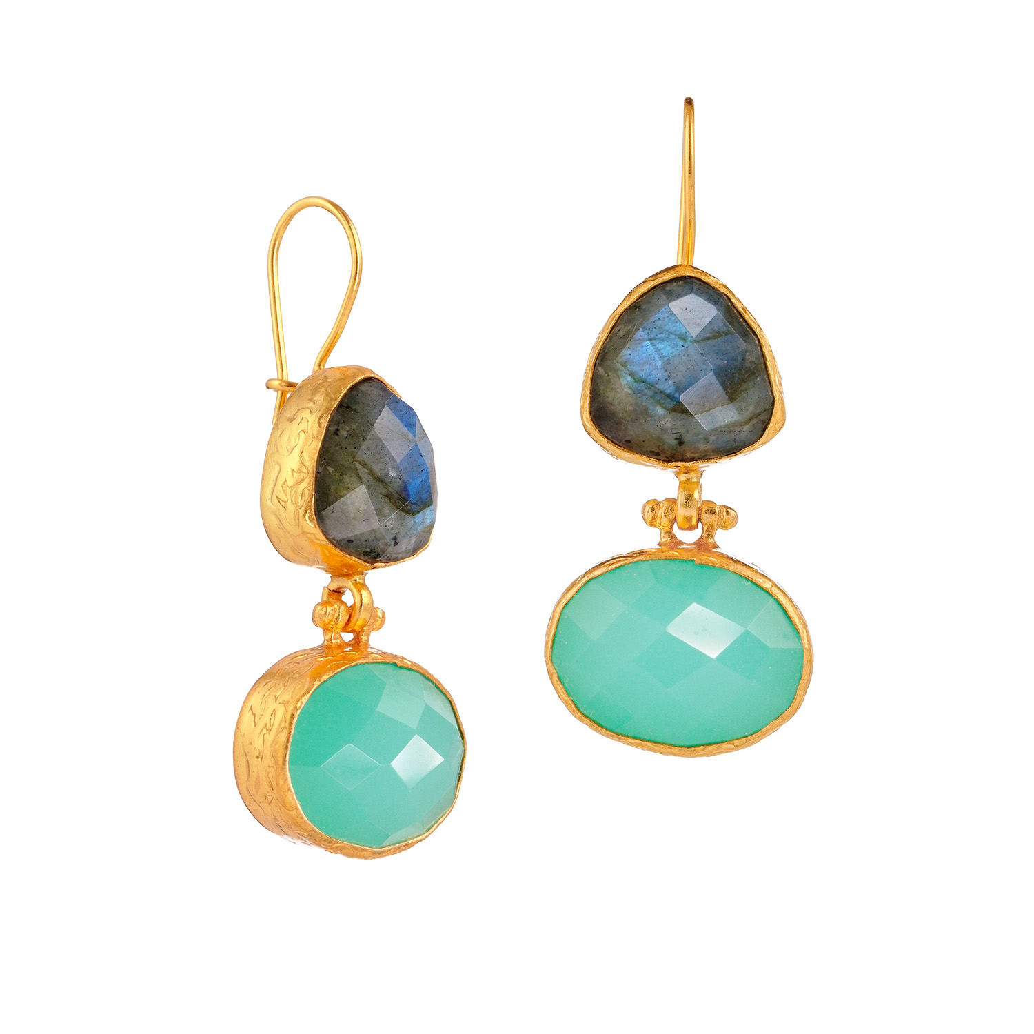 Äußerst edel ist die Kombination von Aquachalcedon und Labradorit.